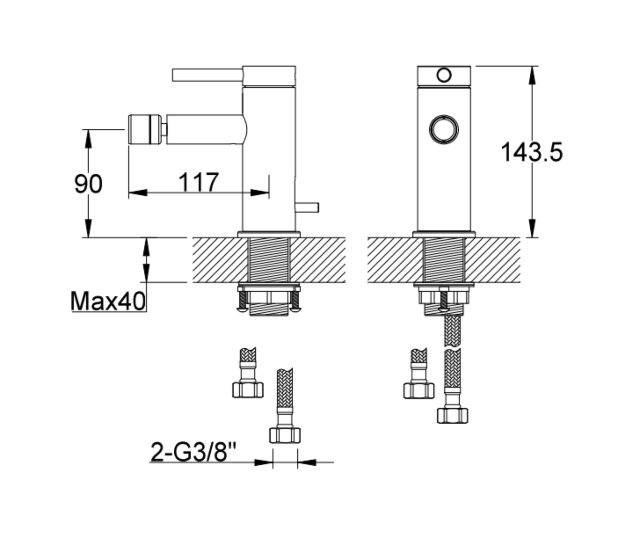 Bateria bidetowa stojąca 14 cm w kolorze szczotkowane złoto