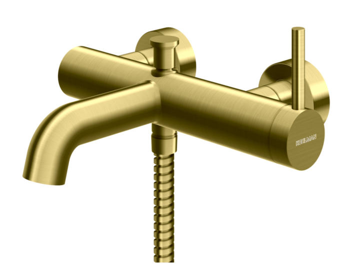 Bateria wannowo-prysznicowa w kolorze złoto szczotkowane
