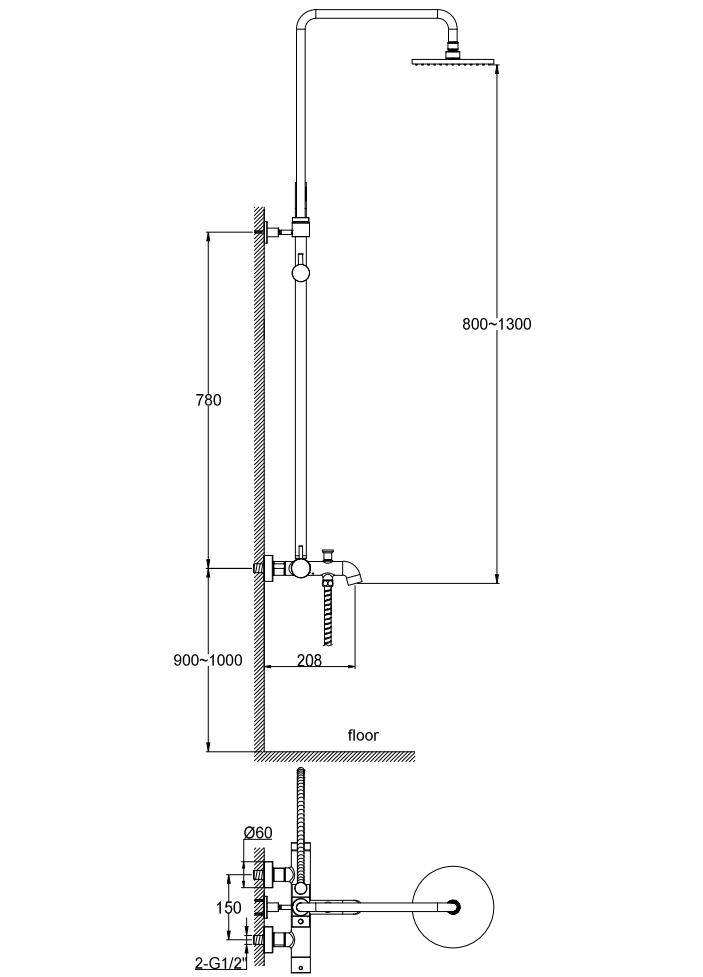 Bateria posiada głowicę ceramiczną, deszczownia o średnicy 20 cm. Słuchawka wykonana z trwałego mosiądzu.