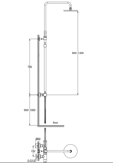 Zestaw natryskowy, ścienny. Wykończenie: grafit szczotkowany.