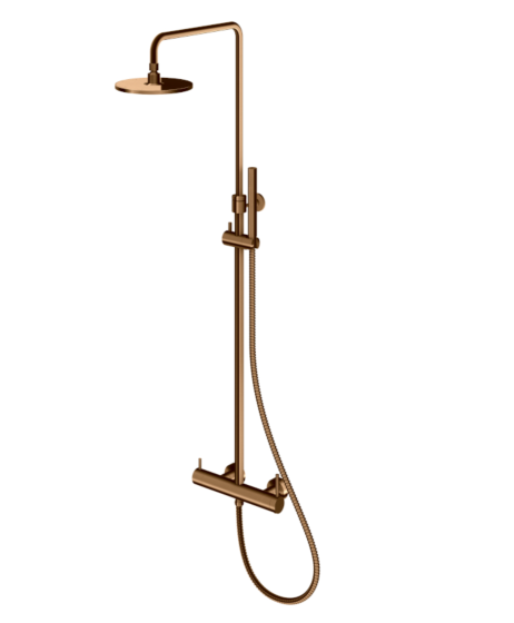 Zestaw natryskowy, ścienny. Wykończenie: miedź szczotkowana.
