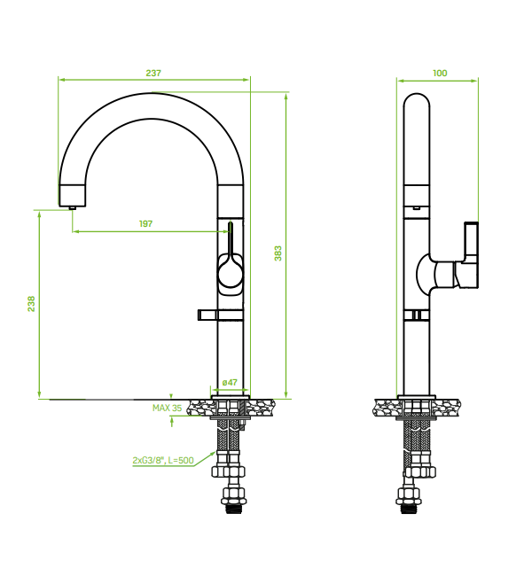 Bateria zlewozmywakowa Pureco to połączenie eleganckiego, minimalistycznego designu z codzienną funkcjonalnością i troską o środowisko. Charakterystyczna gięta wylewka w matowej czerni nadaje kuchni nowoczesny, a zarazem ponadczasowy akcent, który sprawdzi się zarówno w aranżacjach industrialnych, jak i klasycznych. Ruchoma wylewka zapewnia pełną swobodę – napełnianie garnków, płukanie warzyw czy zmywanie naczyń staje się wyjątkowo wygodne.Zastosowany w modelu aerator Neoperl ogranicza przepływ wody bez utraty wydajności, co przekłada się na niższe zużycie wody oraz mniejsze rachunki.Jedną z największych zalet baterii jest zintegrowane i uniwersalne podłączenie do filtra wody. Dzięki niemu możesz korzystać z czystej, filtrowanej wody prosto z kranu.