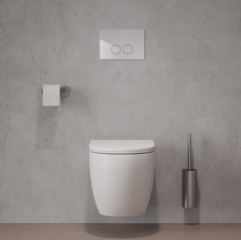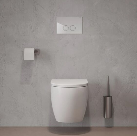 Jego smukła forma dyskretnie wtapia się w powierzchnię ściany, a okrągły kształt klawiszy i starannie dopracowane proporcje zapewniają wygodę codziennego użytkowania. Intuicyjne oznaczenia ułatwiają wybór ilości spłukiwanej wody dostosowanej do potrzeb, co przekłada się na oszczędność wody oraz większy komfort przy każdym użyciu.
