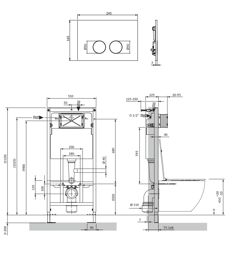 stelaż podtynkowy STRONGFRAME do zabudowy lekkiej; wysokość: 112 cm, szerokość: 51 cm, głębokość ramy: 12,5 cm, głębokość zabudowy: 12,5 cm–25 cm
