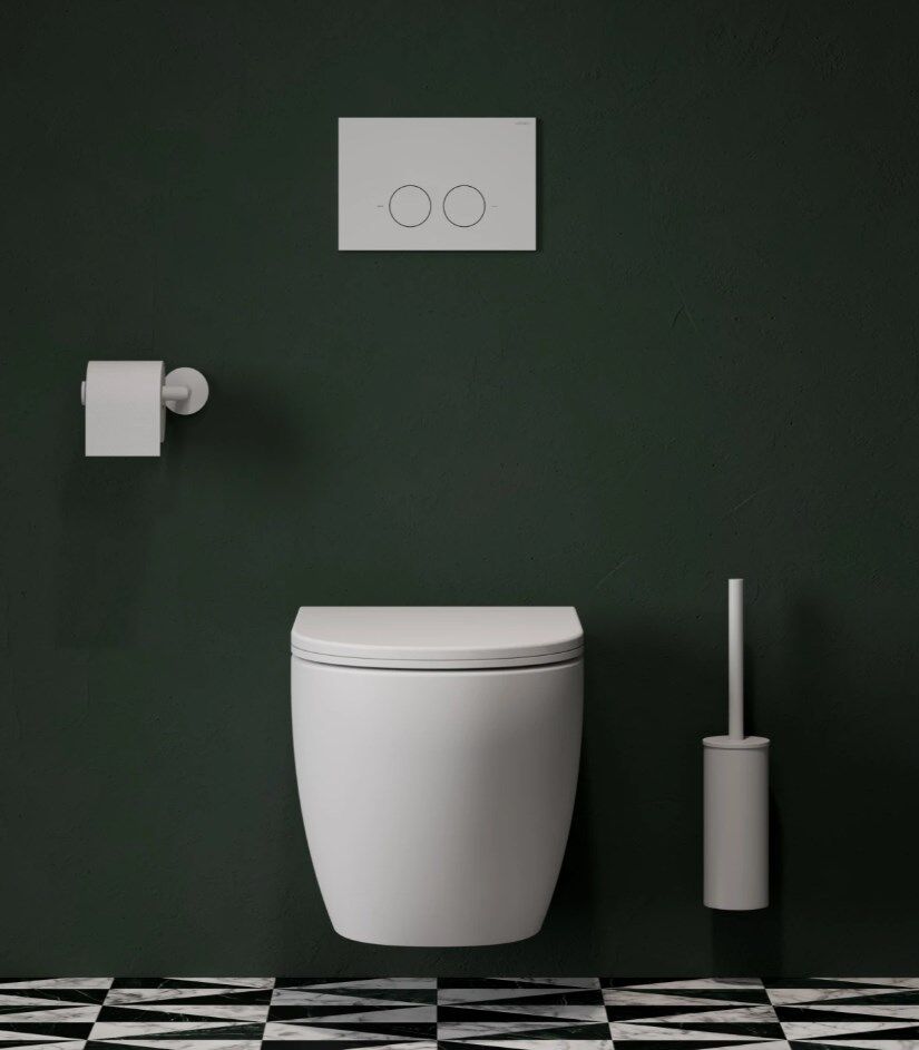 Przycisk spłukujący jest wykończony w kolorze biały mat – subtelnym odcieniu o aksamitnej w dotyku, matowej powierzchni.