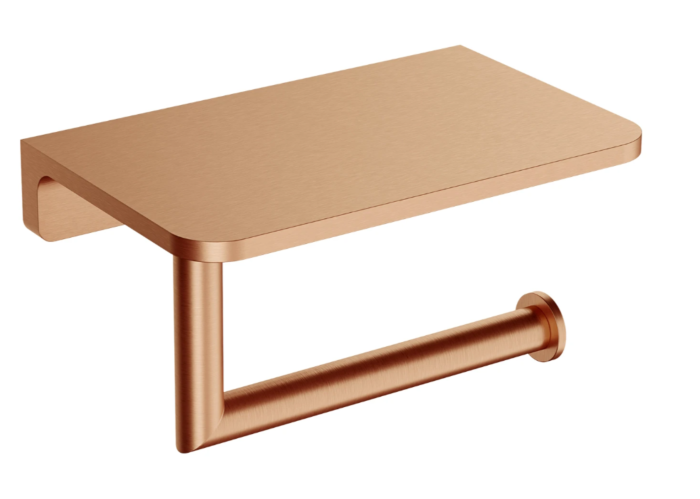 Wykonany z wysokiej jakości mosiądzu uchwyt na papier toaletowy to eleganckie i praktyczne dopełnienie wyposażenia łazienki. Zintegrowana półka umożliwia wygodne odkładanie drobnych przedmiotów oraz środków higienicznych, zapewniając uporządkowaną i funkcjonalną przestrzeń. Dzięki możliwości zmiany kierunku ramienia uchwytu produkt można zamontować zarówno po lewej, jak i po prawej stronie, łatwo dopasowując go do układu pomieszczenia i indywidualnych preferencji.