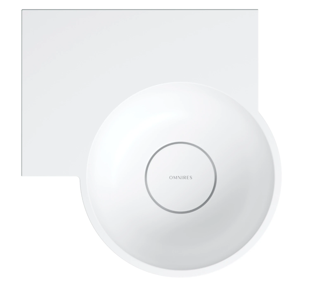 Umywalka z kolekcji OMNIRES OVO charakteryzuje się minimalistyczną, wyrazistą formą o doskonałych proporcjach. Powstały z zabawy geometrią kształt tworzą dwa przeciwległe półokręgi umywalki, połączone z prostokątną, funkcjonalną półką – idealnym miejscem do montażu baterii, a także do odstawienia kosmetyków czy innych niezbędnych akcesoriów. Harmonijnie wyprofilowane ścianki zostały wykończone płaskim, podkreślającym formę rantem, a idealnie dopasowana maskownica odpływu gwarantuje najwyższą estetykę. Od spodu umywalki zaprojektowano dyskretne, fabrycznie podcienione punkty, które wskazują miejsca na wykonanie otworów pod baterię lub dozownik, umożliwiając elastyczne dopasowanie armatury do indywidualnych potrzeb.
