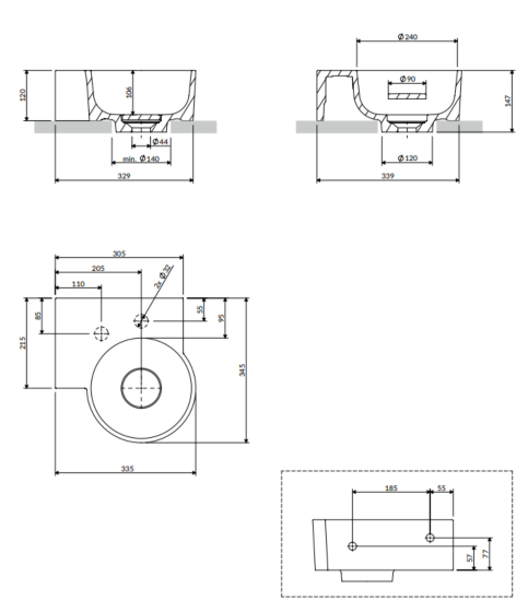 w przypadku montażu nablatowego wymagane jest wycięcie okręgu w blacie o średnicy 140 mm