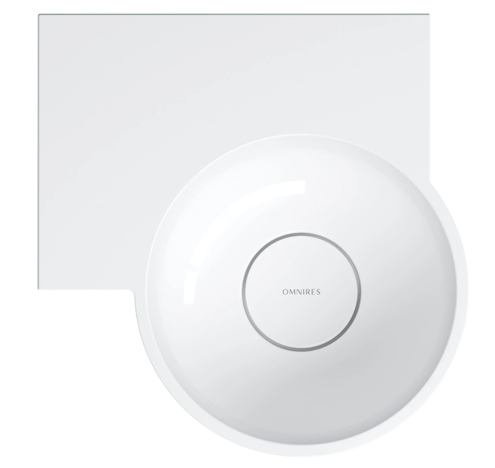 Umywalka z kolekcji OMNIRES OVO charakteryzuje się minimalistyczną, wyrazistą formą o doskonałych proporcjach. Powstały z zabawy geometrią kształt tworzą dwa przeciwległe półokręgi umywalki, połączone z prostokątną, funkcjonalną półką – idealnym miejscem do montażu baterii, a także do odstawienia kosmetyków czy innych niezbędnych akcesoriów. Harmonijnie wyprofilowane ścianki zostały wykończone płaskim, podkreślającym formę rantem, a idealnie dopasowana maskownica odpływu gwarantuje najwyższą estetykę. Od spodu umywalki zaprojektowano dyskretne, fabrycznie podcienione punkty, które wskazują miejsca na wykonanie otworów pod baterię lub dozownik, umożliwiając elastyczne dopasowanie armatury do indywidualnych potrzeb.