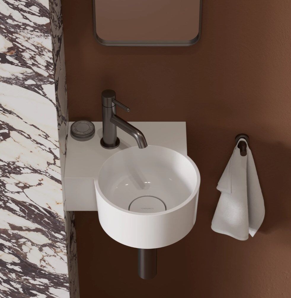 Starannie dopracowana forma umywalki, z perfekcyjnie wykończonymi bokami, zapewnia swobodę montażu i doskonały wygląd w każdej wersji. Zawieszona na ścianie lub w narożniku zachwyca nowoczesną lekkością, a ustawiona na blacie podkreśla wyrazistość i unikalny styl wnętrza. Jej kompaktowe gabaryty czynią ją doskonałym wyborem również do pomieszczeń o ograniczonej powierzchni.