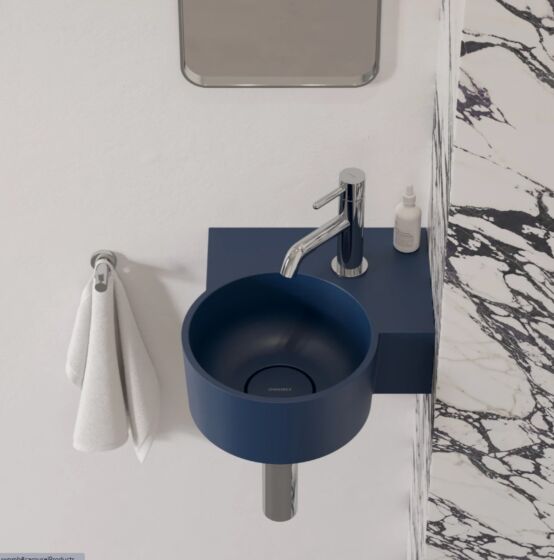 OVO w kolorze midnight blue (RAL5003) to umywalka w wyrazistym odcieniu granatu, o aksamitnej w dotyku, matowej powierzchni.