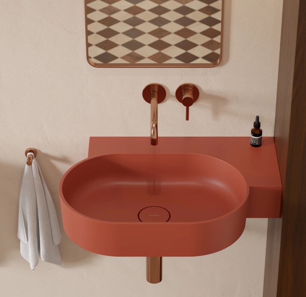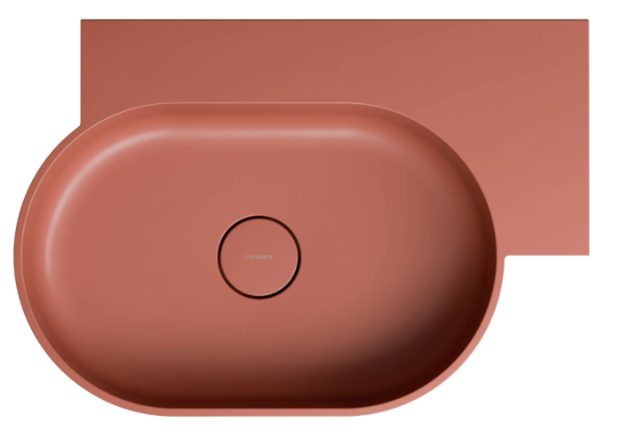 OVO w kolorze terracotta (RAL8004) to umywalka w wyszukanym kolorze ceglanej czerwieni, o aksamitnej w dotyku, matowej powierzchni.