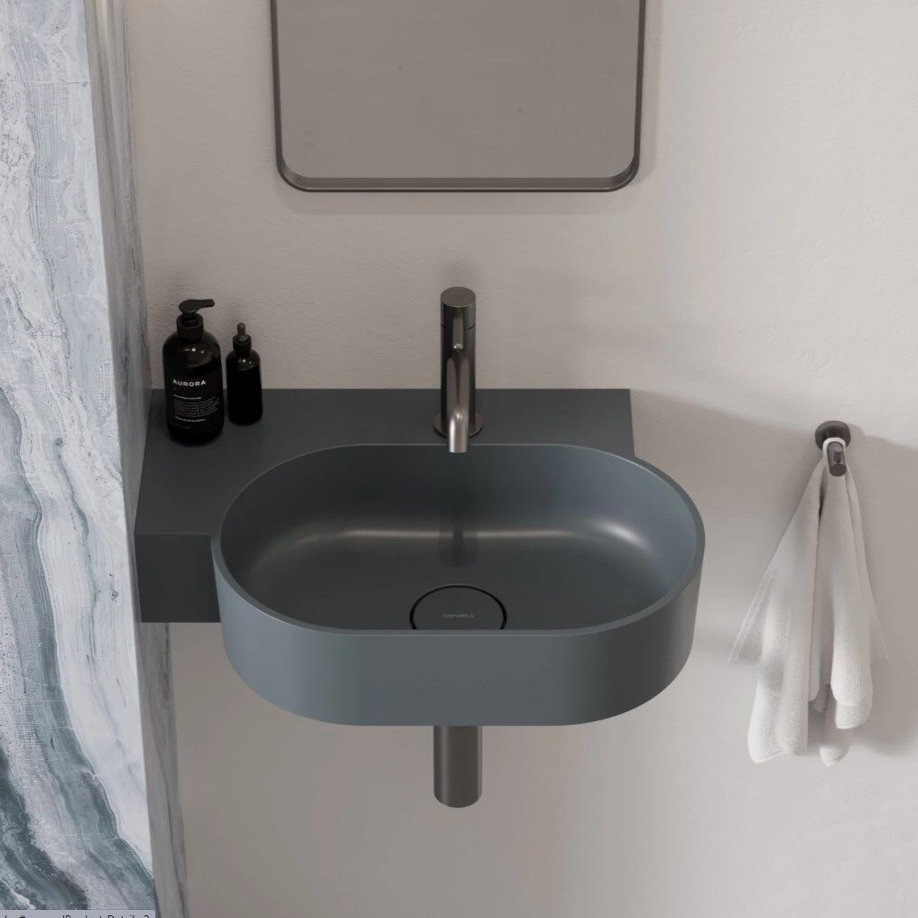 OVO w kolorze midnight blue (RAL5003) to umywalka w wyrazistym odcieniu granatu, o aksamitnej w dotyku, matowej powierzchni.