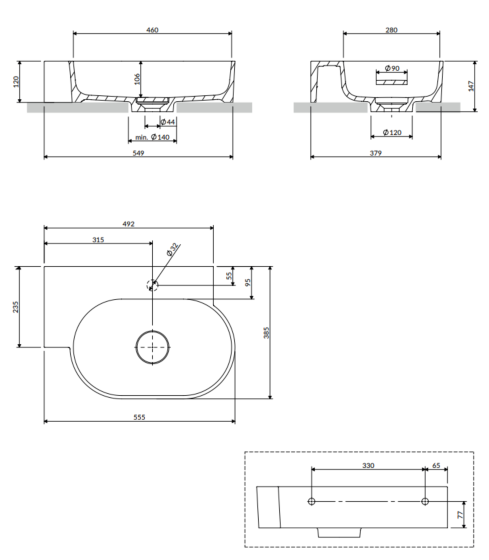 Umywalka z kolekcji OMNIRES OVO charakteryzuje się minimalistyczną, wyrazistą formą o doskonałych proporcjach. Powstały z zabawy geometrią kształt tworzą dwa przeciwległe półokręgi umywalki, połączone z prostokątną, funkcjonalną półką – idealnym miejscem do montażu baterii, a także do odstawienia kosmetyków czy innych niezbędnych akcesoriów. Harmonijnie wyprofilowane ścianki zostały wykończone płaskim, podkreślającym formę rantem, a idealnie dopasowana maskownica odpływu gwarantuje najwyższą estetykę. Od spodu umywalki zaprojektowano dyskretny, fabrycznie podcieniony punkt, który wskazuje miejsce na wykonanie otworu pod baterię.