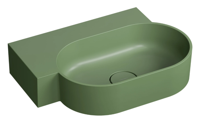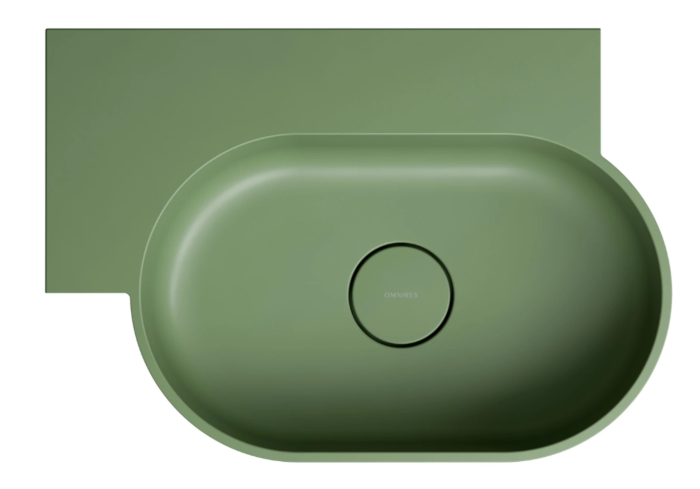 Umywalka z kolekcji OMNIRES OVO charakteryzuje się minimalistyczną, wyrazistą formą o doskonałych proporcjach. Powstały z zabawy geometrią kształt tworzą dwa przeciwległe półokręgi umywalki, połączone z prostokątną, funkcjonalną półką – idealnym miejscem do montażu baterii, a także do odstawienia kosmetyków czy innych niezbędnych akcesoriów. Harmonijnie wyprofilowane ścianki zostały wykończone płaskim, podkreślającym formę rantem, a idealnie dopasowana maskownica odpływu gwarantuje najwyższą estetykę. Od spodu umywalki zaprojektowano dyskretny, fabrycznie podcieniony punkt, który wskazuje miejsce na wykonanie otworu pod baterię.