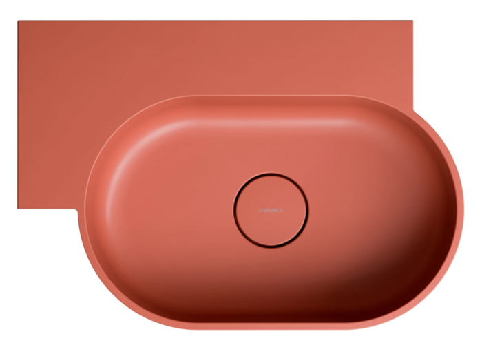 OVO w kolorze terracotta (RAL8004) to umywalka w wyszukanym kolorze ceglanej czerwieni, o aksamitnej w dotyku, matowej powierzchni.