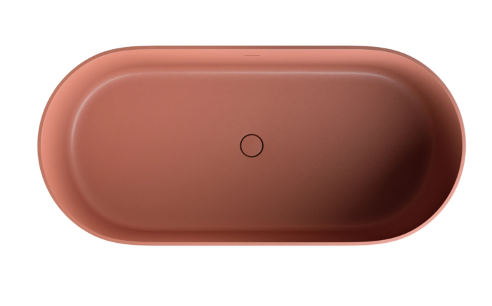 OVO w kolorze terracotta (RAL8004) to wanna w wyszukanym kolorze ceglanej czerwieni, o aksamitnej w dotyku, matowej powierzchni.