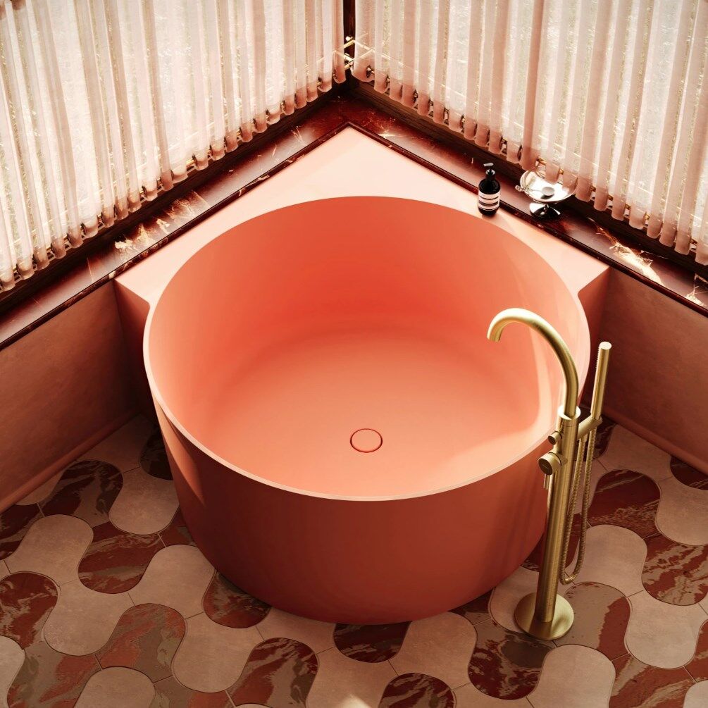 OVO w kolorze coral (RAL3012) to wanna w subtelnym odcieniu różu, o aksamitnej w dotyku, matowej powierzchni.