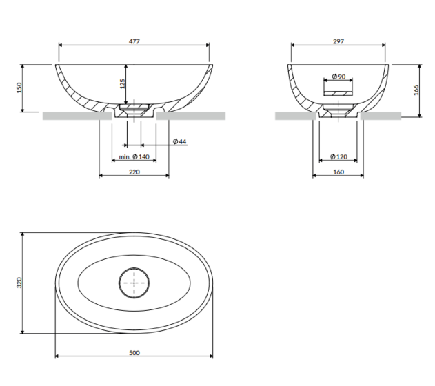 Umywalka nablatowa z kolekcji OMNIRES SHELL M+ charakteryzuje się współczesną eliptyczną formą, która miękką linią zwęża się ku podstawie. Minimalistyczna bryła wygląda lekko a zarazem solidnie, tworząc efekt wyrzeźbionego ze skały monolitu. Wewnątrz umywalki dopasowana maskownica dyskretnie zakrywa odpływ, nie zaburzając przy tym harmonijnie wyprofilowanej sylwetki.