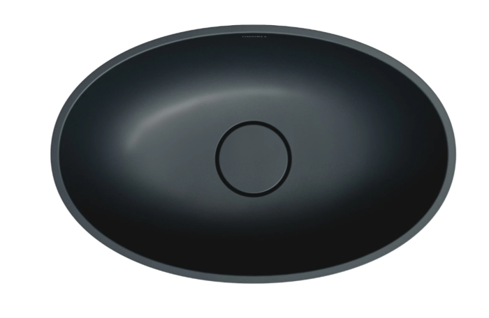 SHELL w kolorze black lava (RAL9005) to umywalka w wyrazistym odcieniu czerni, o aksamitnej w dotyku, matowej powierzchni.