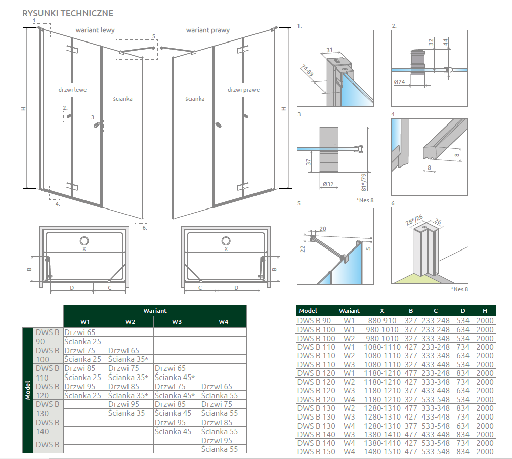 Rozmiar drzwi / ścianki | 108 cm, 109 cm, 110 cm, 111 cm |