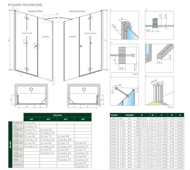 Serię kabin NES cechuje nowoczesny design i elegancja. Modele świetnie pasują do wielu aranżacji, łącząc uniwersalność z oryginalnymi detalami. Konfiguracja: drzwi 65 cm + ścianka 45 cm. Nominalna szerokość wnęki: 110 cm (tolerancja montażu 108–111 cm). Wersja: Czarny, szkło 6 mm, prawe. Cechy kluczowe: Szkło hartowane 6 lub 8 mm (w zależności od wersji), zgodne z PN‑EN 12150‑1.; System profili przyściennych umożliwiający niwelację krzywizny ścian.; Zawias rurowy – otwieranie do wewnątrz i na zewnątrz.; Mechanizm unoszenia i opuszczania drzwi – cicha, bezawaryjna praca i ochrona uszczelki.; Eleganckie, starannie wykończone detale.; Możliwy montaż bez brodzika oraz bez listwy progowej (elementy w zestawie).; Rozwiązanie przyjazne dla osób z ograniczoną mobilnością..