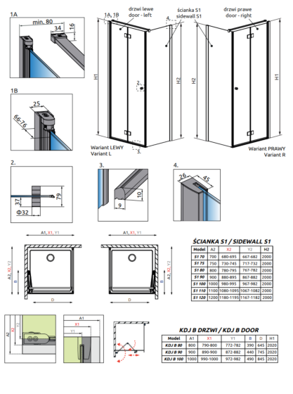 | Sposób otwierania drzwi | Uchylne (otwierane na zewnatrz), Składane |