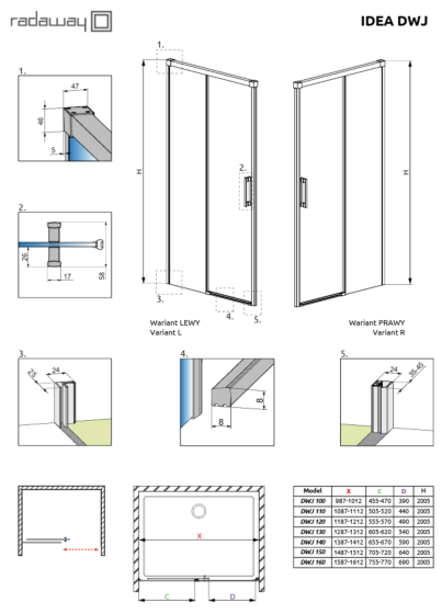 Nowoczesne rozwiązanie Drzwi prysznicowe z serii Idea DWJ to eleganckie i funkcjonalne wyjście do aranżacji wnęki łazienkowej. Wysokość 200 cm oraz szkło o grubości 6 mm gwarantują bezpieczeństwo i wygodę codziennego użytkowania.