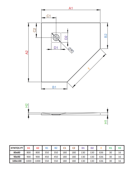 Radaway brodzik pięciokątny Kyntos PT 90×90 cm to harmonijne połączenie funkcjonalności i elegancji, idealne do nowoczesnych łazienek. Zastosowany konglomerat marmurowy zapewnia trwałość, odporność na zarysowania i łatwość czyszczenia. Dzięki niskiej wysokości (3 cm), brodzik może być montowany bezpośrednio na posadzce lub równo z powierzchnią płytek. Posiada antypoślizgową powierzchnię (klasa B, DIN 51097) i właściwości antybakteryjne, co zwiększa bezpieczeństwo w codziennym użytkowaniu. To świetna opcja do łazienek narożnych, gdzie ważna jest zarówno forma, jak i ergonomia.