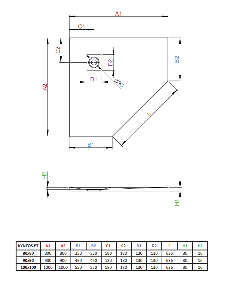 Brodzik Kyntos PT 90x90 pięciokątny marki Radaway