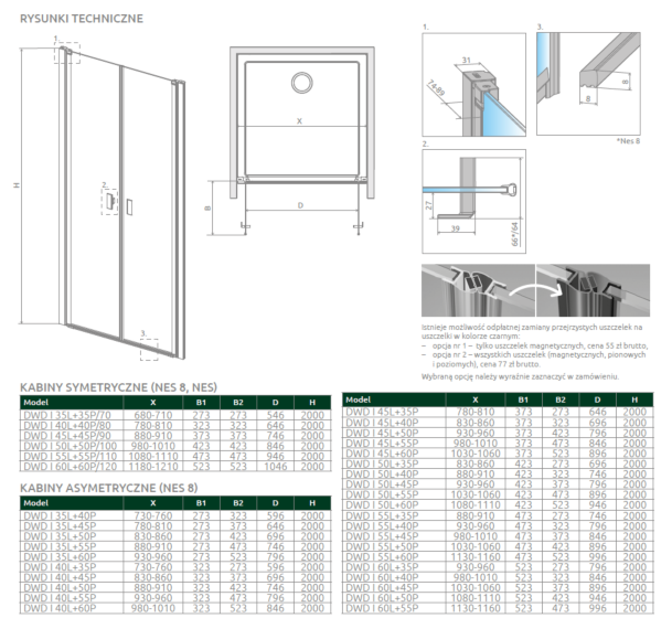 Rozmiar drzwi / ścianki | 78 cm, 79 cm, 80 cm, 81 cm |
