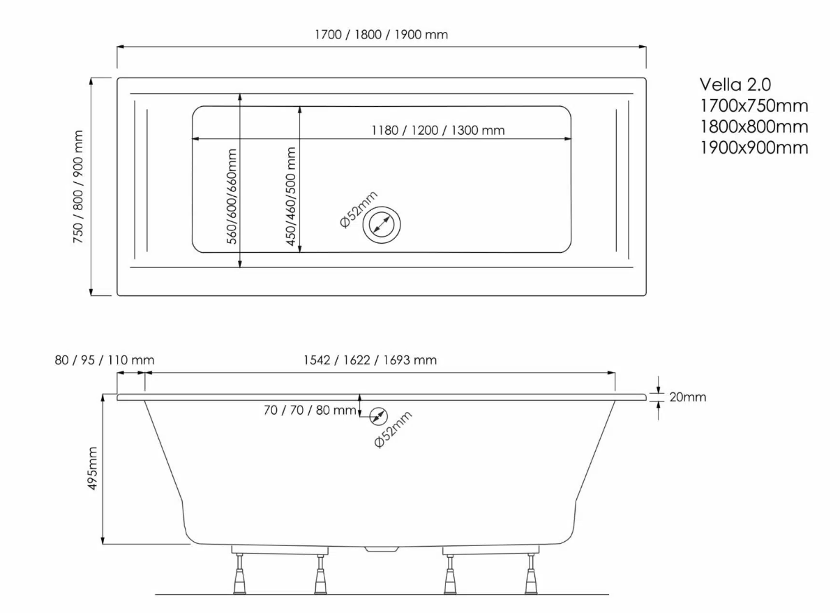 Wannom tej serii nadaje się niepowtarzalny charakter dzięki nowoczesnemu designowi i wyrazistym liniami. Dodatkowo, ich ponadstandardowe rozmiary zapewniają większy komfort podczas kąpieli. Rant Slim (o grubości 20 mm) wprowadza efekt lekkości i nowoczesności do całej przestrzeni łazienki. W zestawie znajduje się metalowy stelaż, który umożliwia regulację wysokości.